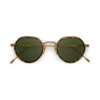 The Annie-O is a round frame with a Windsor rim, featuring handmade acetate wrapped around the titanium eyewire. Its sleek, Art-Deco-inspired step-cut temples bring unique character to the design.