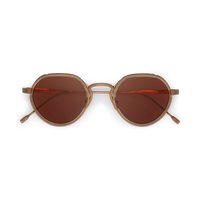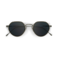 Modified round silhouette with acetate windsor rim. Step-cut temple detail, titanium nosepads. 2 base Nylon lenses with backside anti-reflective coating and 100% UV protection.