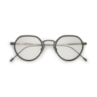 Modified round silhouette with acetate windsor rim. Step-cut temple detail, titanium nosepads. 2 base Nylon lenses with backside anti-reflective coating and 100% UV protection. | |