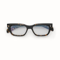 The Comanche is a sizable, rectangular silhouette with an enlarged temple that works in synchronicity with its widened frame front - finding its feet through its paddle temple tip design. Made as an offering for the spirits of creation, the front bevel cut is a carving for natural light to illuminate the micro-details found on this piece.