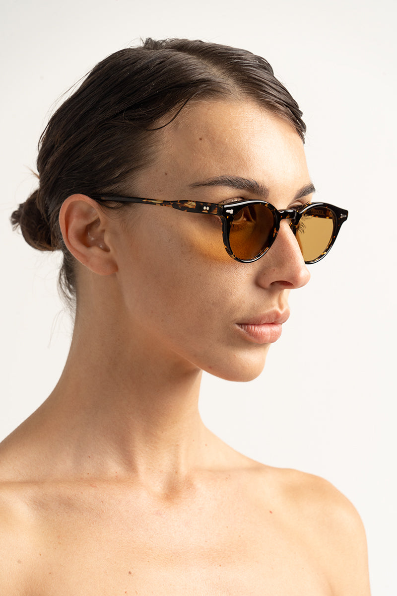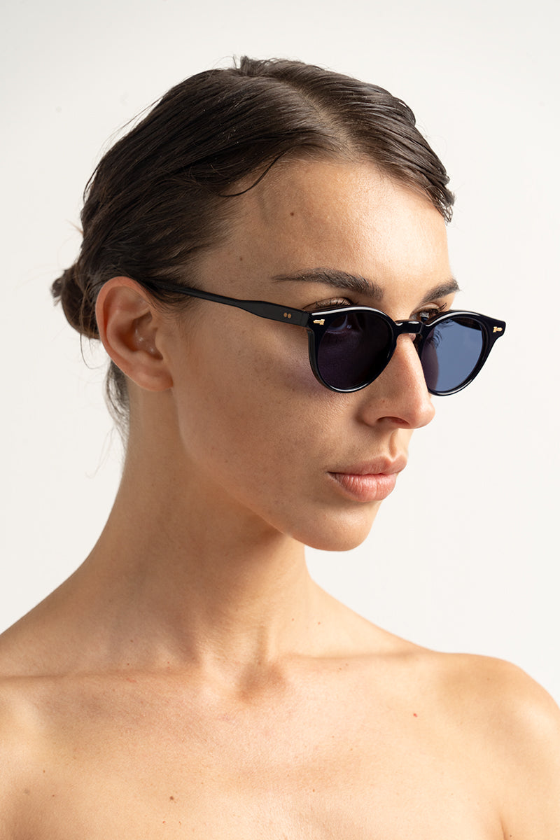 Crazy Horse is notable for its distinctive P-3 circular shape, precise hand finish, and sleek temple design. With its T-shaped ornaments adorned with Art-Deco inspired hairline filigree combined with a classic silhouette, these spectacles are ideal for everyday use by the cultural connoisseur, and will become a staple in every collection.