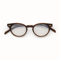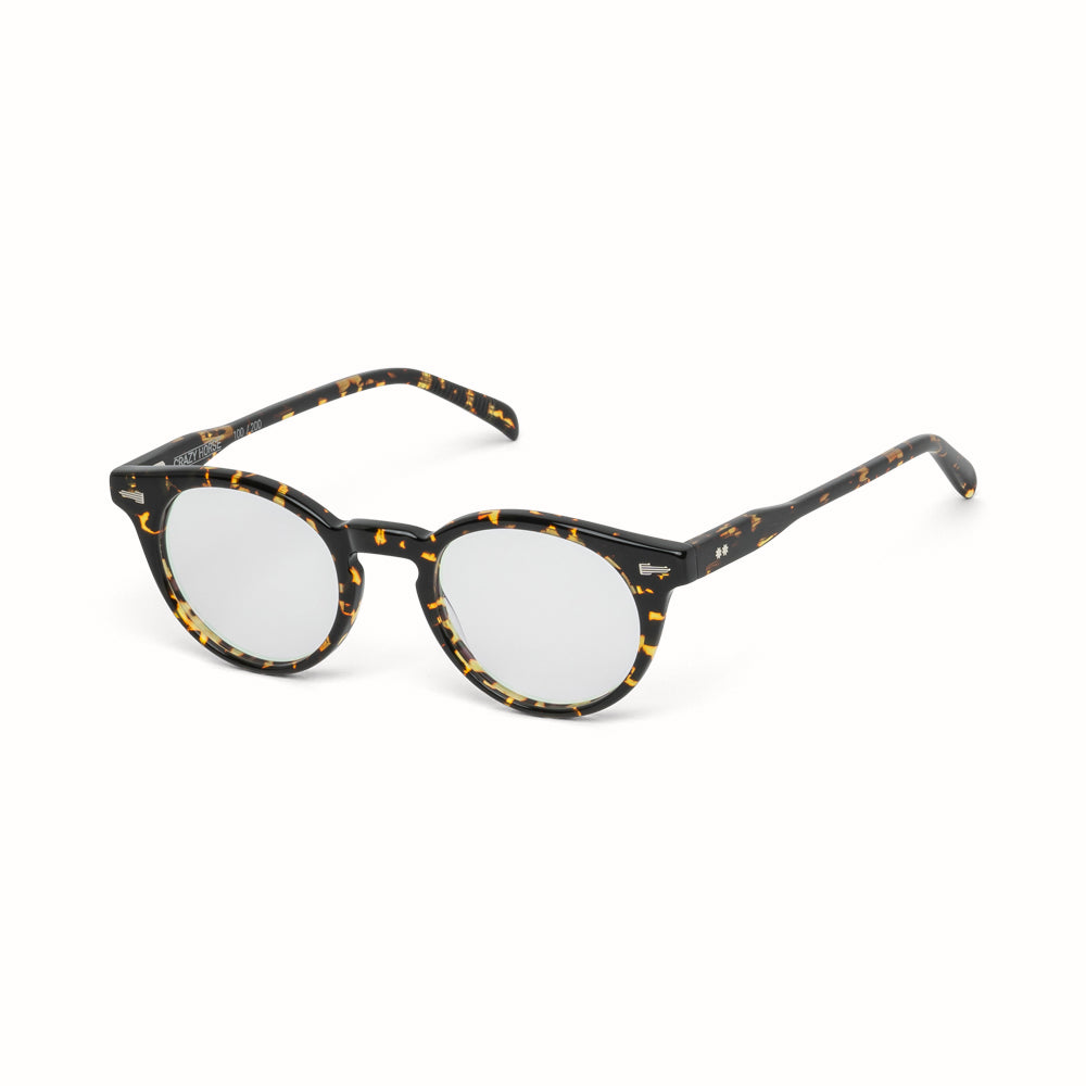 Crazy Horse is notable for its distinctive P-3 circular shape, precise hand finish, and sleek temple design. With its T-shaped ornaments adorned with Art-Deco inspired hairline filigree combined with a classic silhouette, these spectacles are ideal for everyday use by the cultural connoisseur, and will become a staple in every collection.