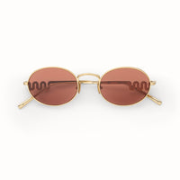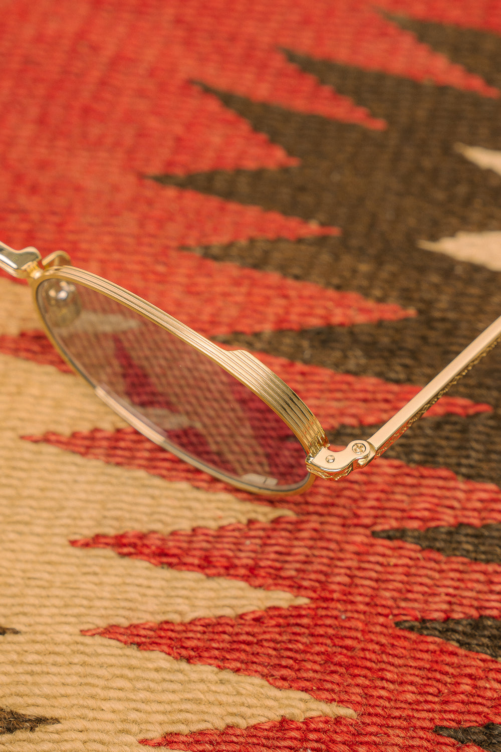 An oval silhouette with saddle bridge construction. 4mm eye-wire detail with Art-Deco inspired filigree and mono-block hinge construction. 2-base lenses with backside anti-reflective coating and 100% UV protection.
