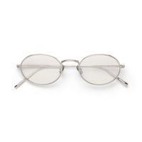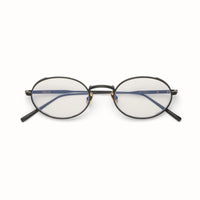 An oval silhouette with saddle bridge construction. 4mm eye-wire detail with Art-Deco inspired filigree and mono-block hinge construction. 2-base lenses with backside anti-reflective coating and 100% UV protection.