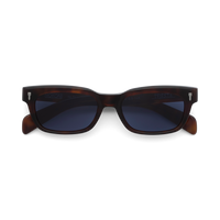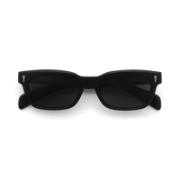 Petite wayfarer silhouette featuring subtle bevel cuts along the top and sides of the lens. Custom front pin ornaments with Art-Deco hairline filigree. 5-barrel hinges with custom spur shaped riveting system. 2 base Nylon lenses with backside anti-reflective coating and 100% UV protection. | |