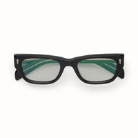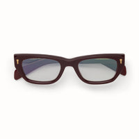 A sharp, unisex cat-eye silhouette inspired by the late 1960s. Custom front pin ornaments with Art-Deco hairline filigree. 7-barrel hinges with custom spur shaped riveting system. 2-base Nylon lenses with backside anti-reflective coating treatment and 100% UV protection. | |