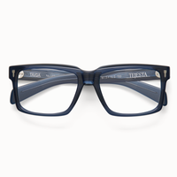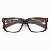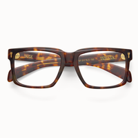 A wide, structured silhouette defined by measured proportions. The frame front is shaped with subtle bevel cuts along the brow creating depth without excess. Custom rivets anchor the temples, paired with seven-barrel hinges for durability and balance. Exposed wire cores run through the temple, revealing the internal architecture beneath the acetate. Designed for presence, built with intention.  Made in Japan.