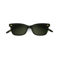 Petite wayfarer silhouette featuring subtle bevel cuts along the top and sides of the lens. Custom front pin ornaments with Art-Deco hairline filigree. 5-barrel hinges with custom spur shaped riveting system. 2 base Nylon lenses with backside anti-reflective coating and 100% UV protection. | |